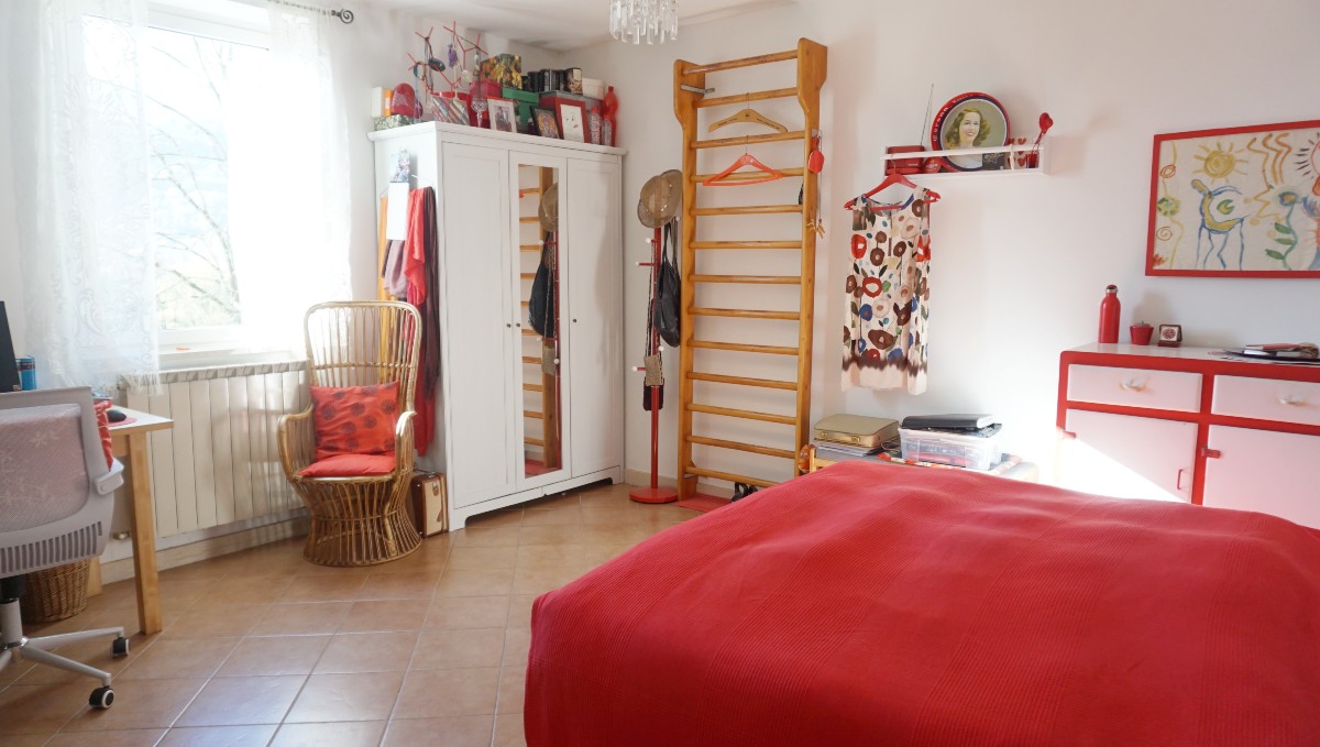 Le finestre e le persiane sono in alluminio, così come i radiatori riscaldati a gas. Al piano superiore è presente anche una stufa a pellet.