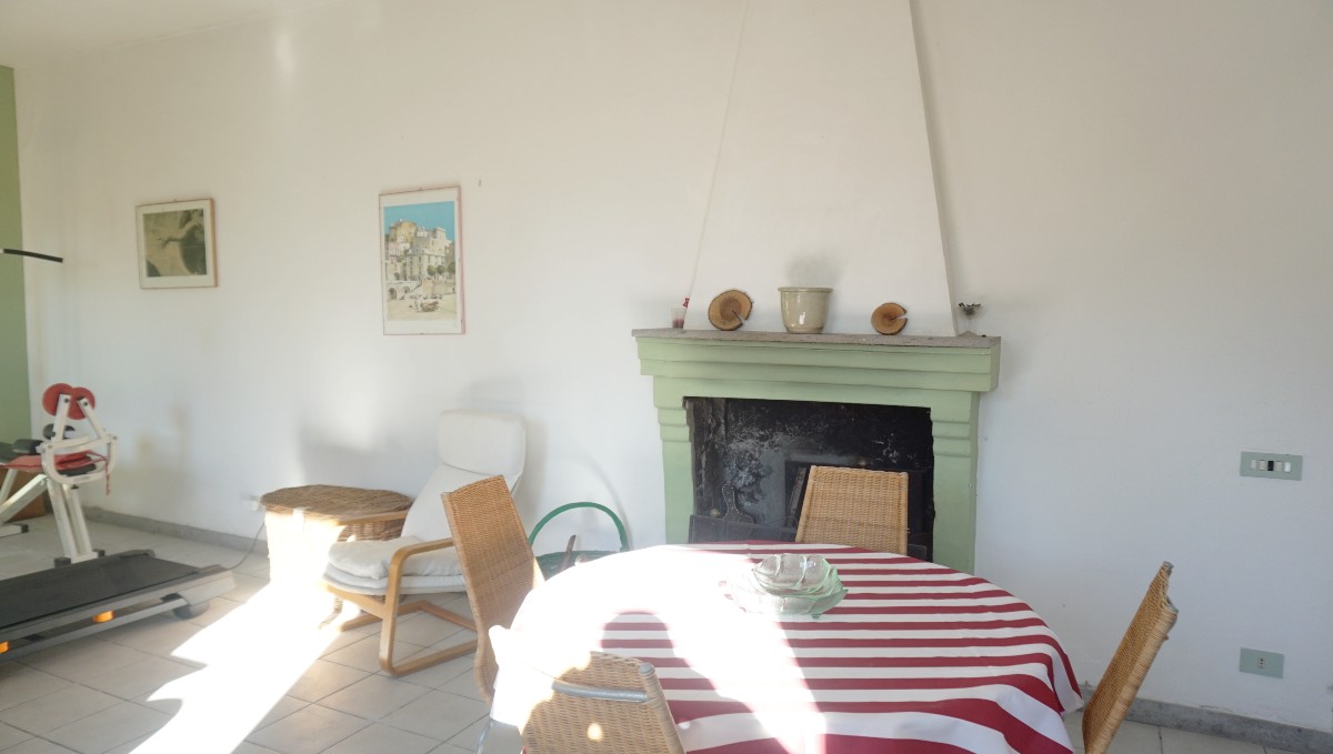 Al piano terra, in stile loft, si trovano un corridoio, 1 camera da letto, 1 ampio soggiorno con camino, un bagno, una piccola cucina, 1 ripostiglio con accesso a una grotta.