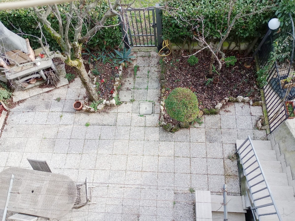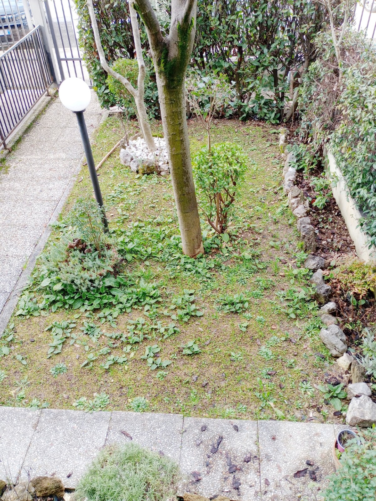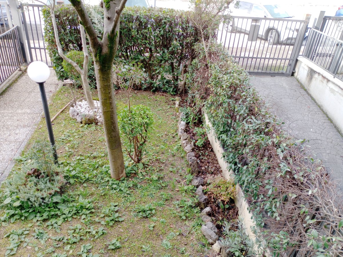 – Al PTERRA ingresso, ampia cucina abitabile con accesso al balcone e giardino, salone con accesso al secondo giardino con barbecue, balcone con accesso al secondo giardino, camera/studio, antibagno, bagno con doccia;