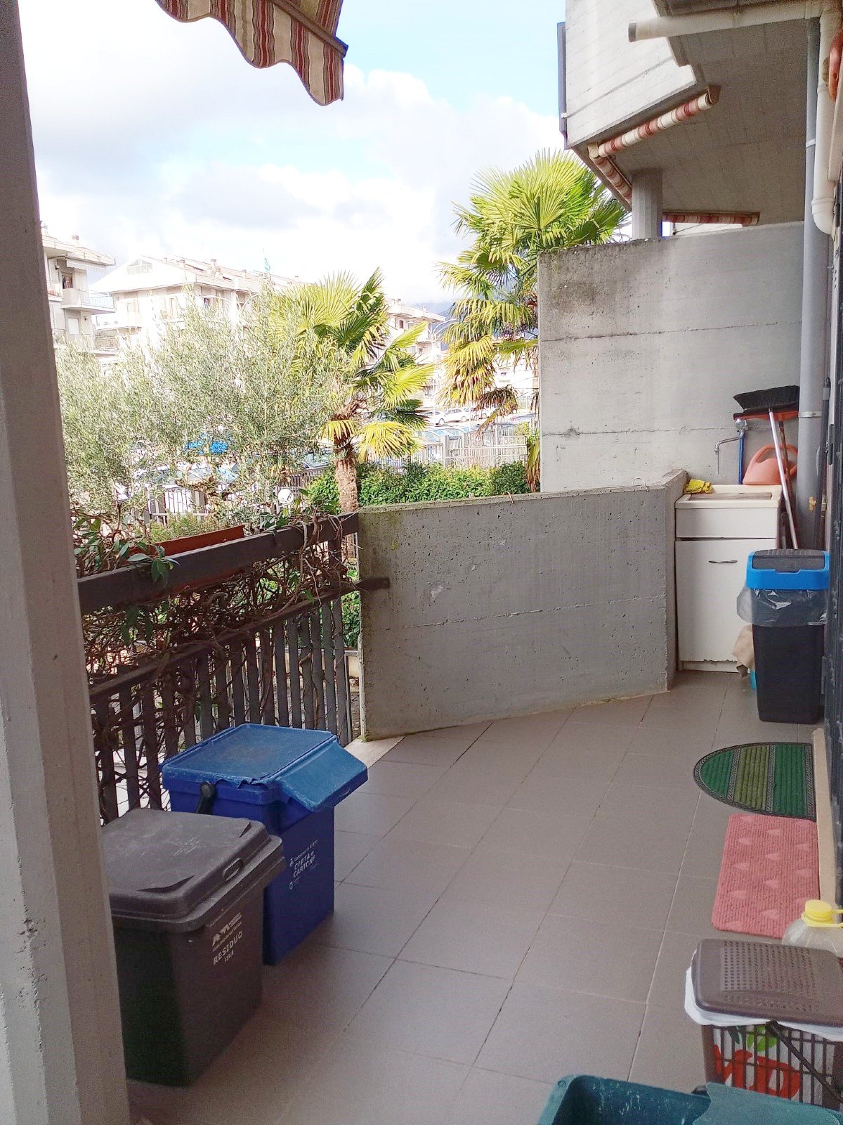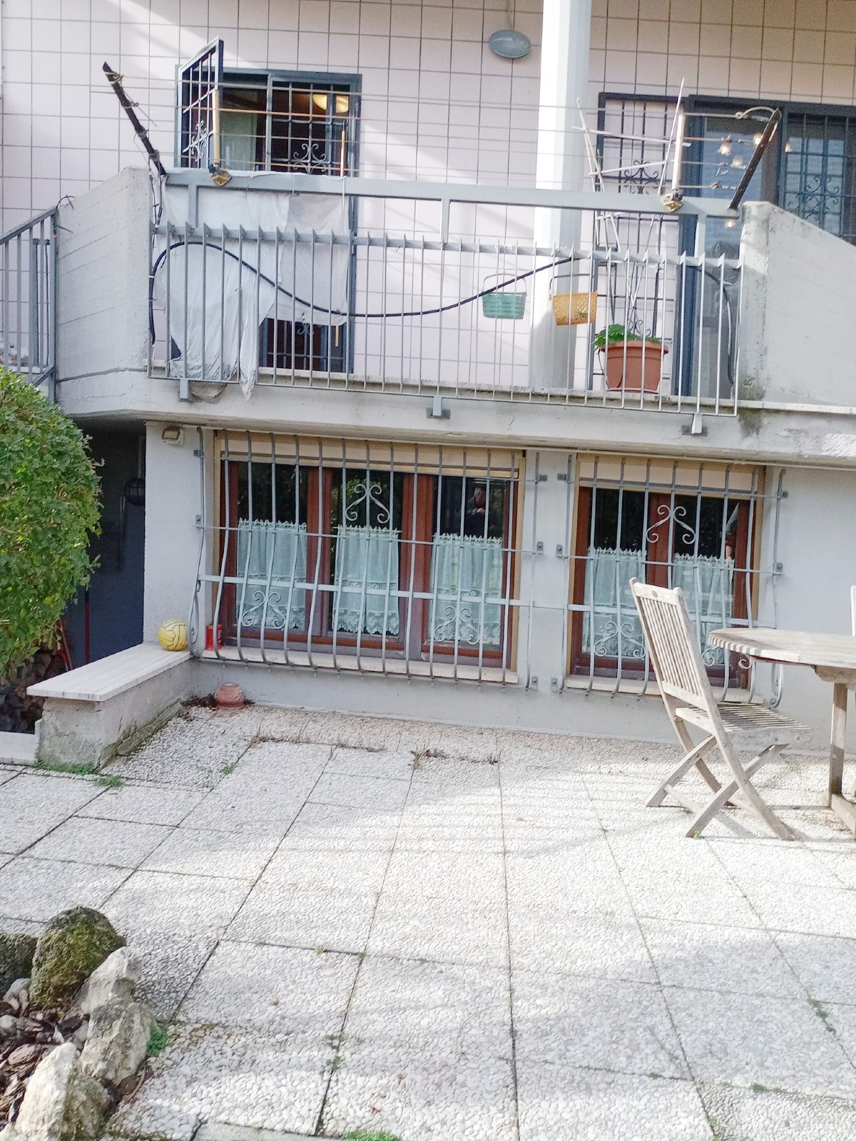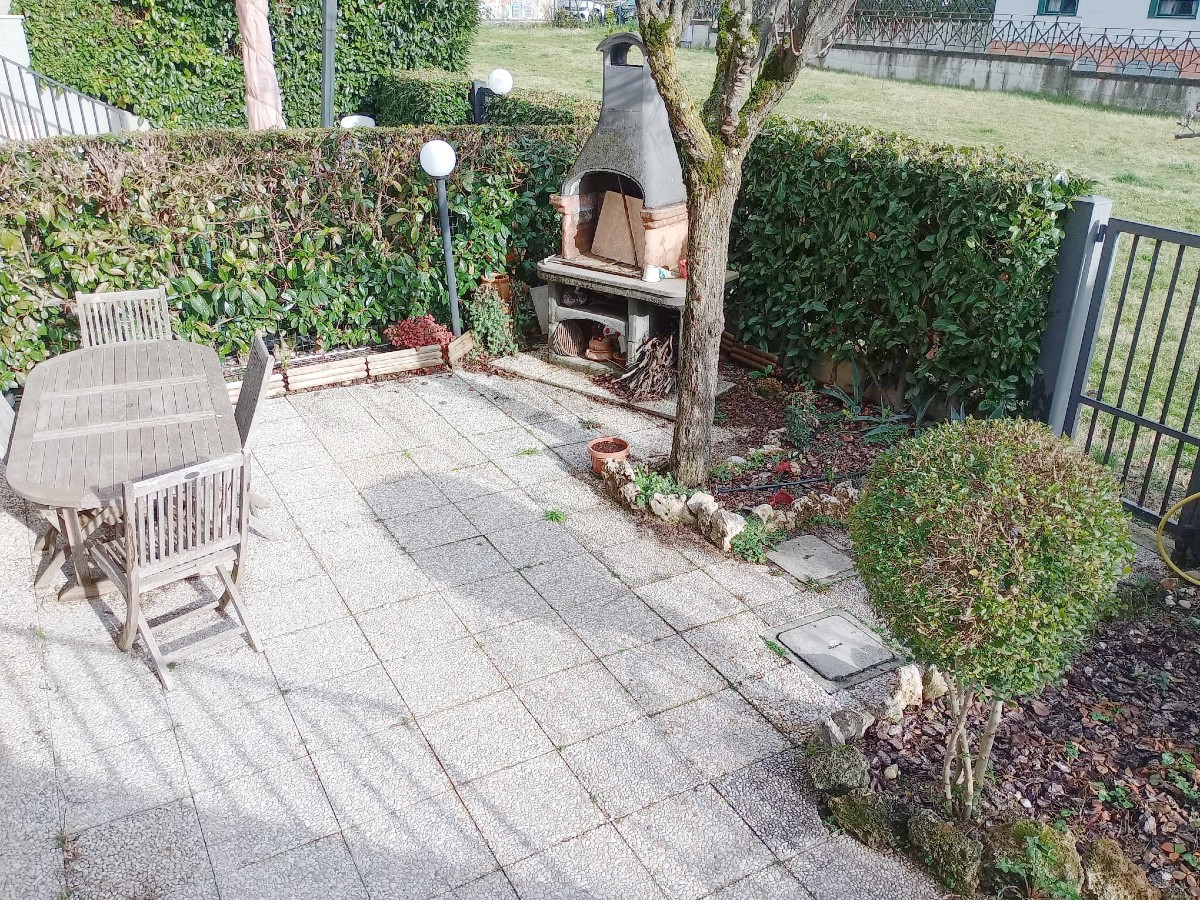 – Al PTERRA ingresso, ampia cucina abitabile con accesso al balcone e giardino, salone con accesso al secondo giardino con barbecue, balcone con accesso al secondo giardino, camera/studio, antibagno, bagno con doccia;