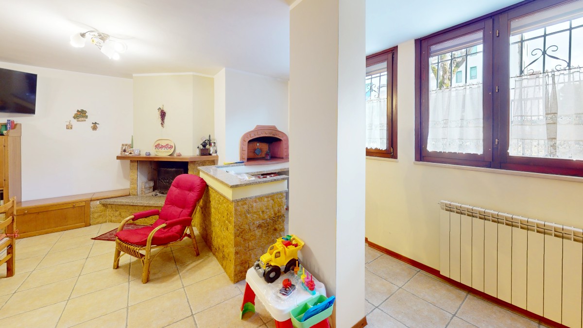 – Al PS1 ampio garage con serranda elettrica, cantina, taverna con accesso al giardino, con cucina camino e forno, camera matrimoniale, bagno. Alla taverna si accede sia dall’interno che con ingresso esterno autonomo;