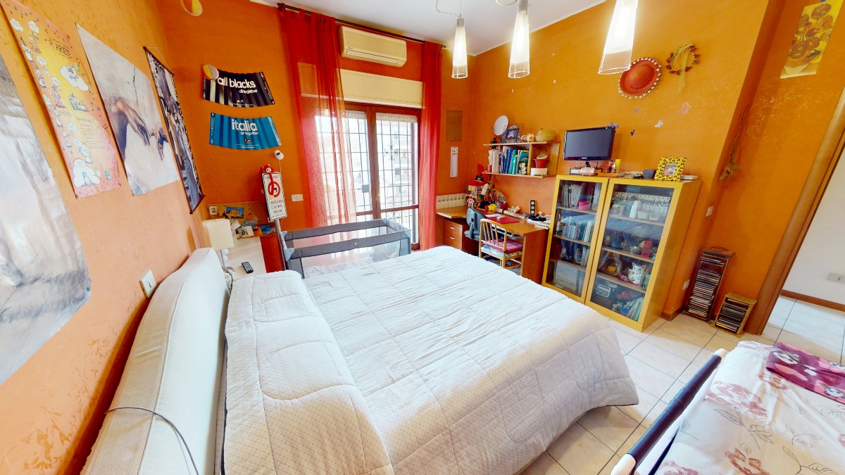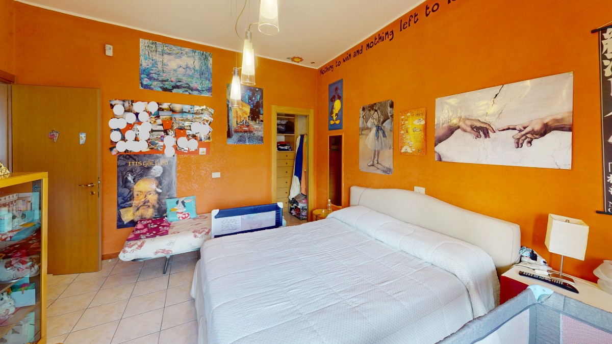 – Al P2 sottotetto con ampia camera con bagno e doccia.