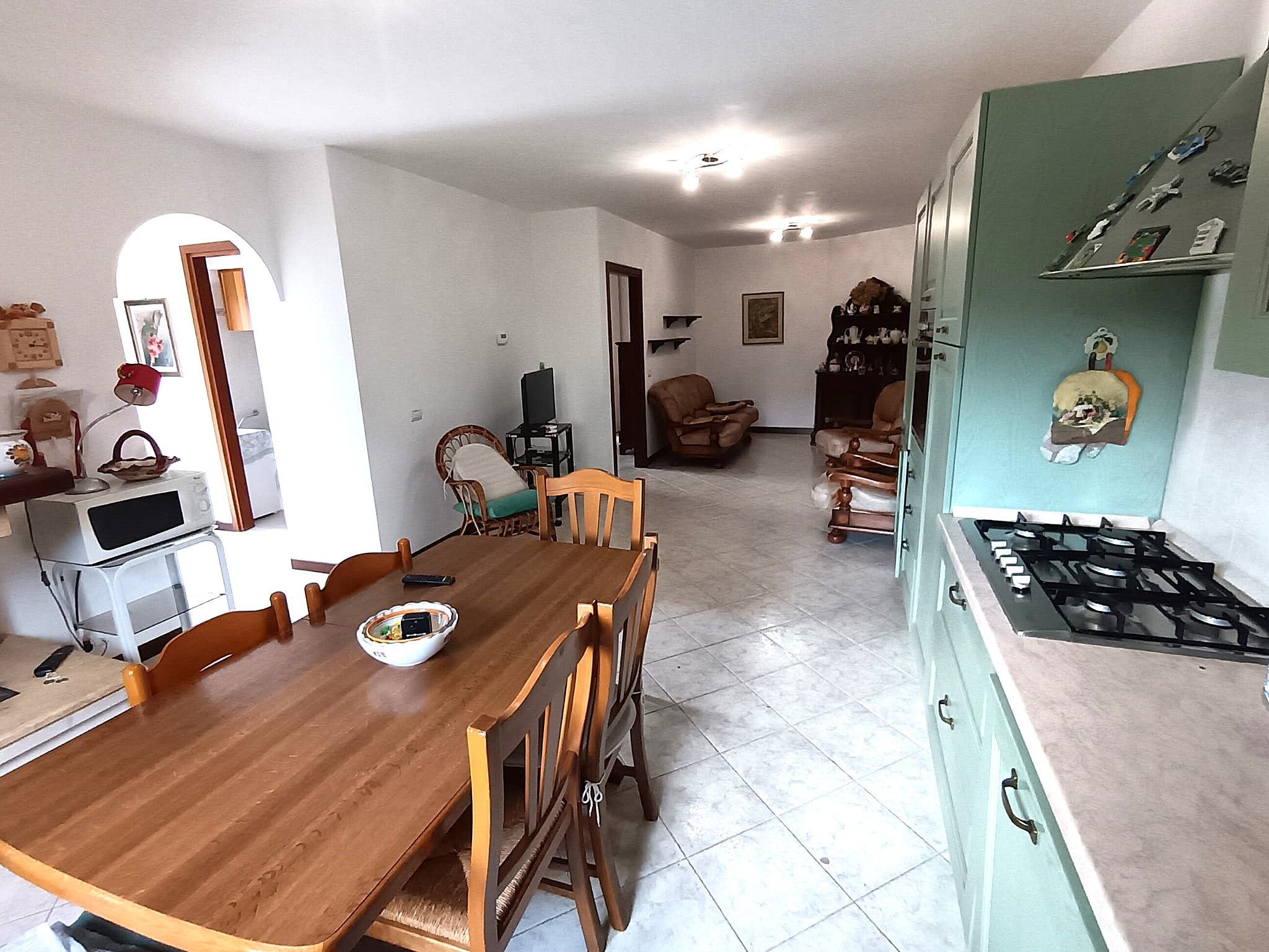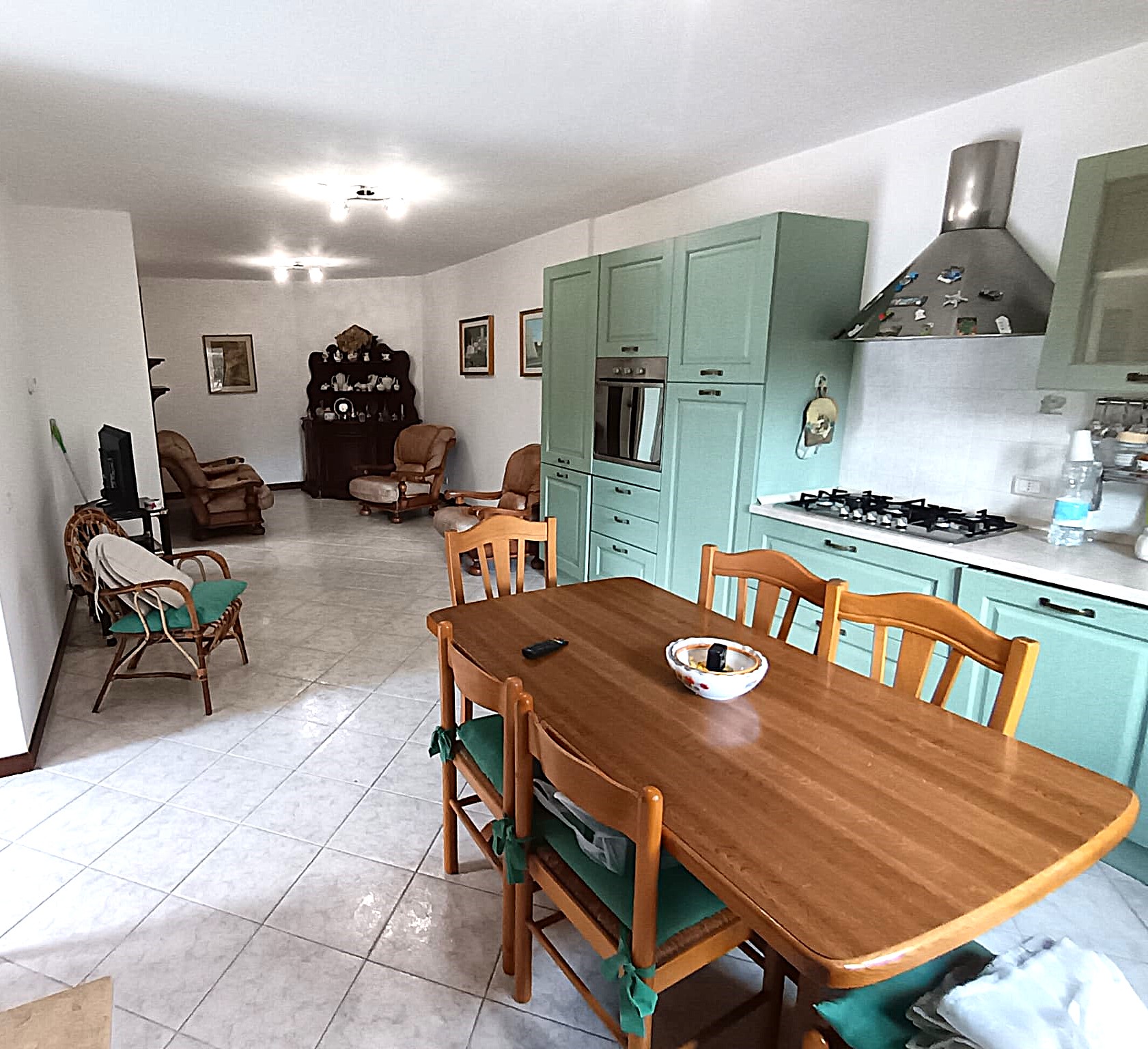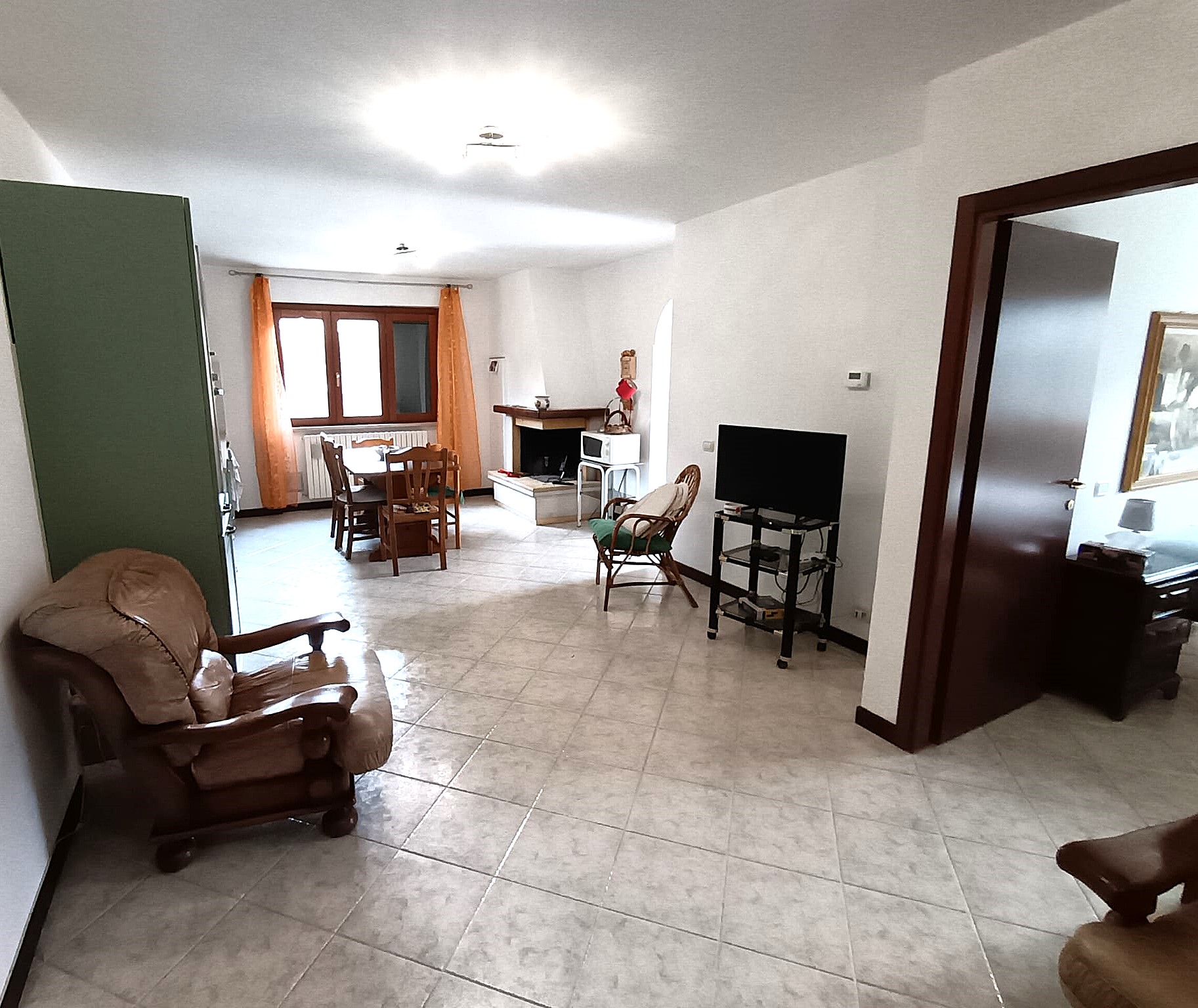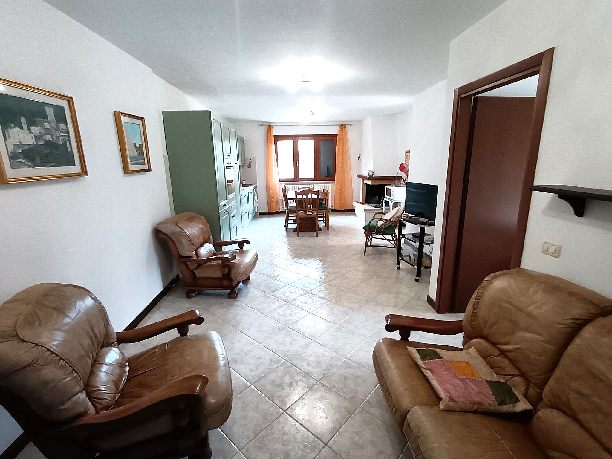- Sala con angolo cottura a vista e camino;