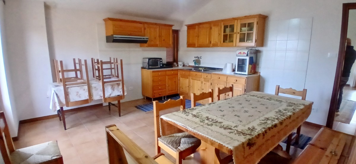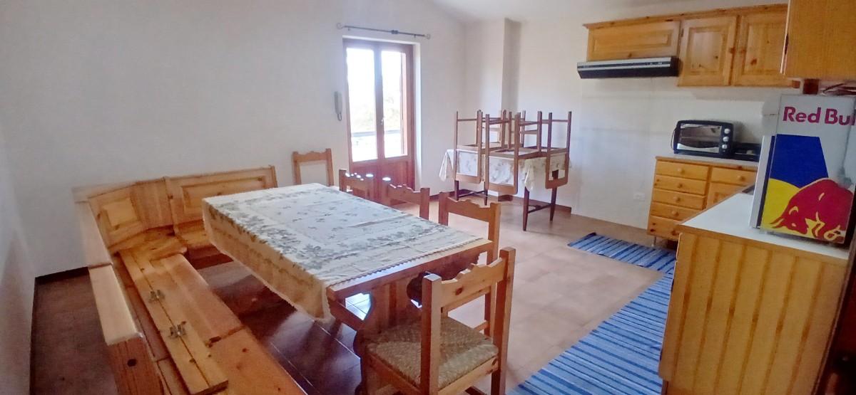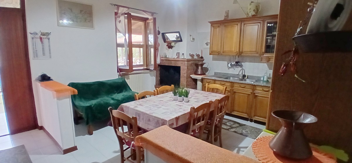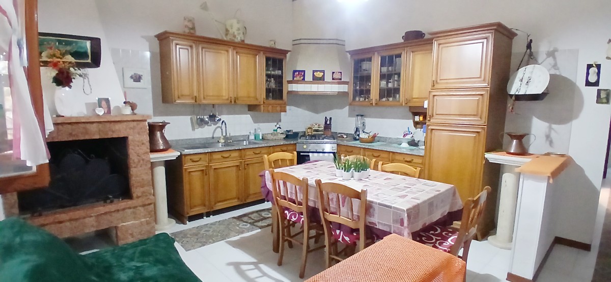 La zona giorno offre un ampio living con camino e cucina, ideale per momenti conviviali e di relax.