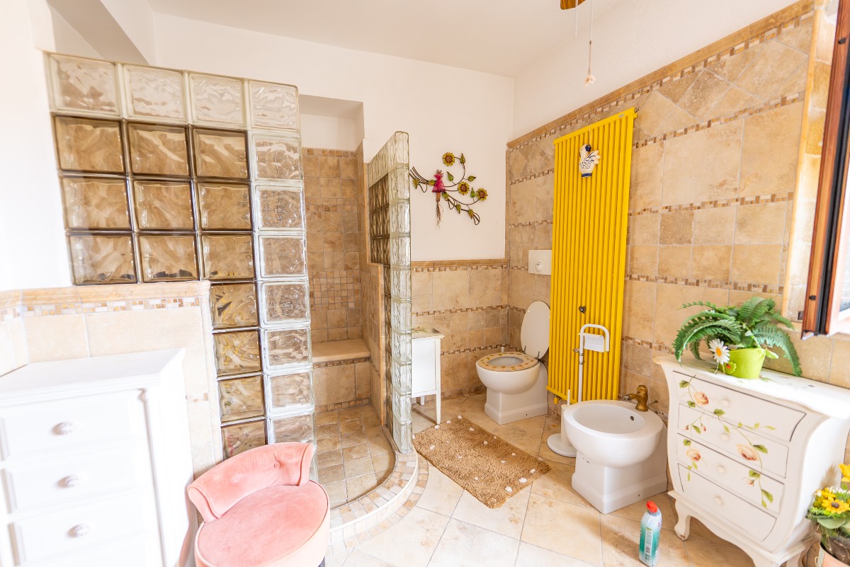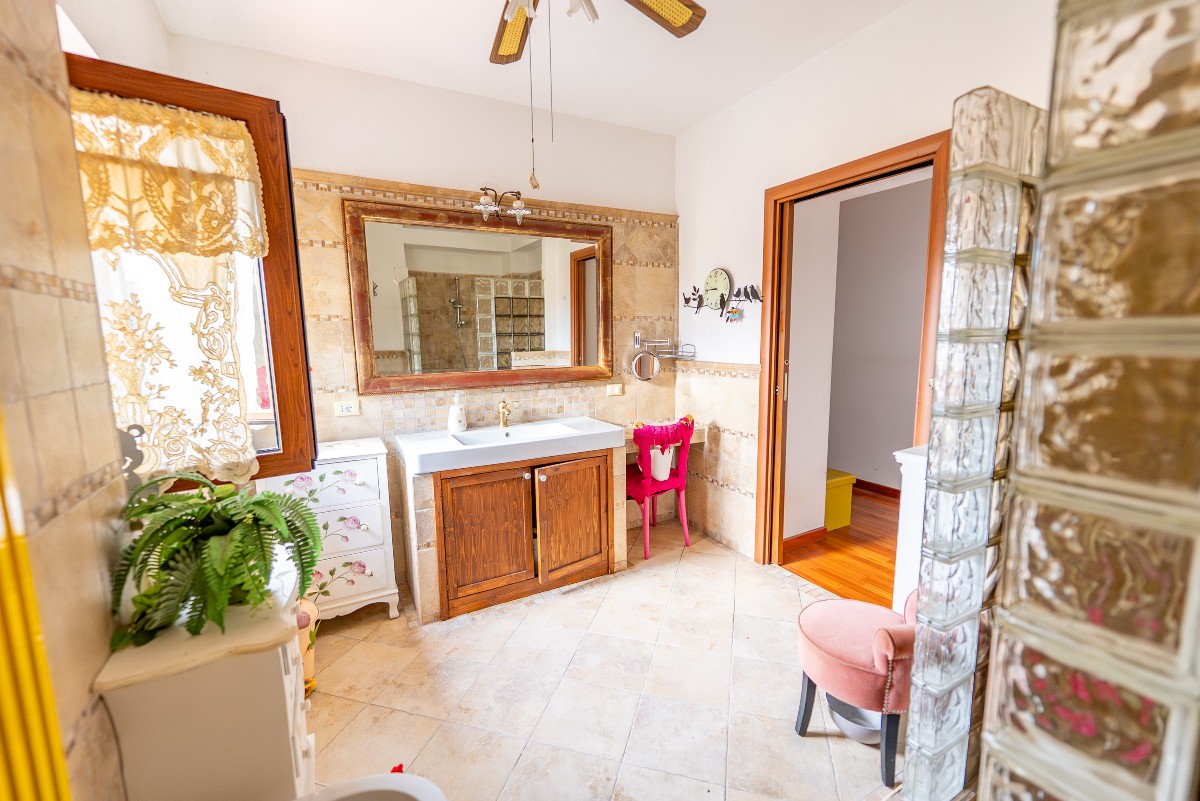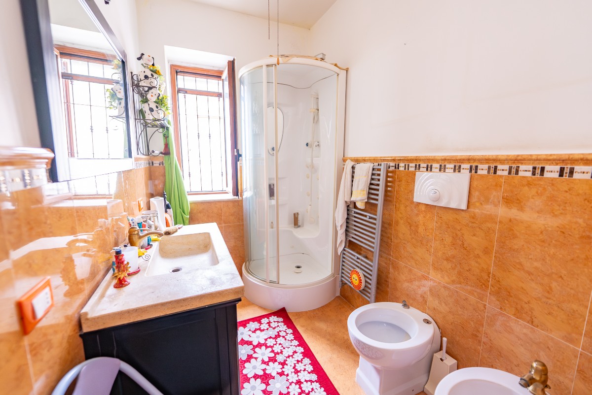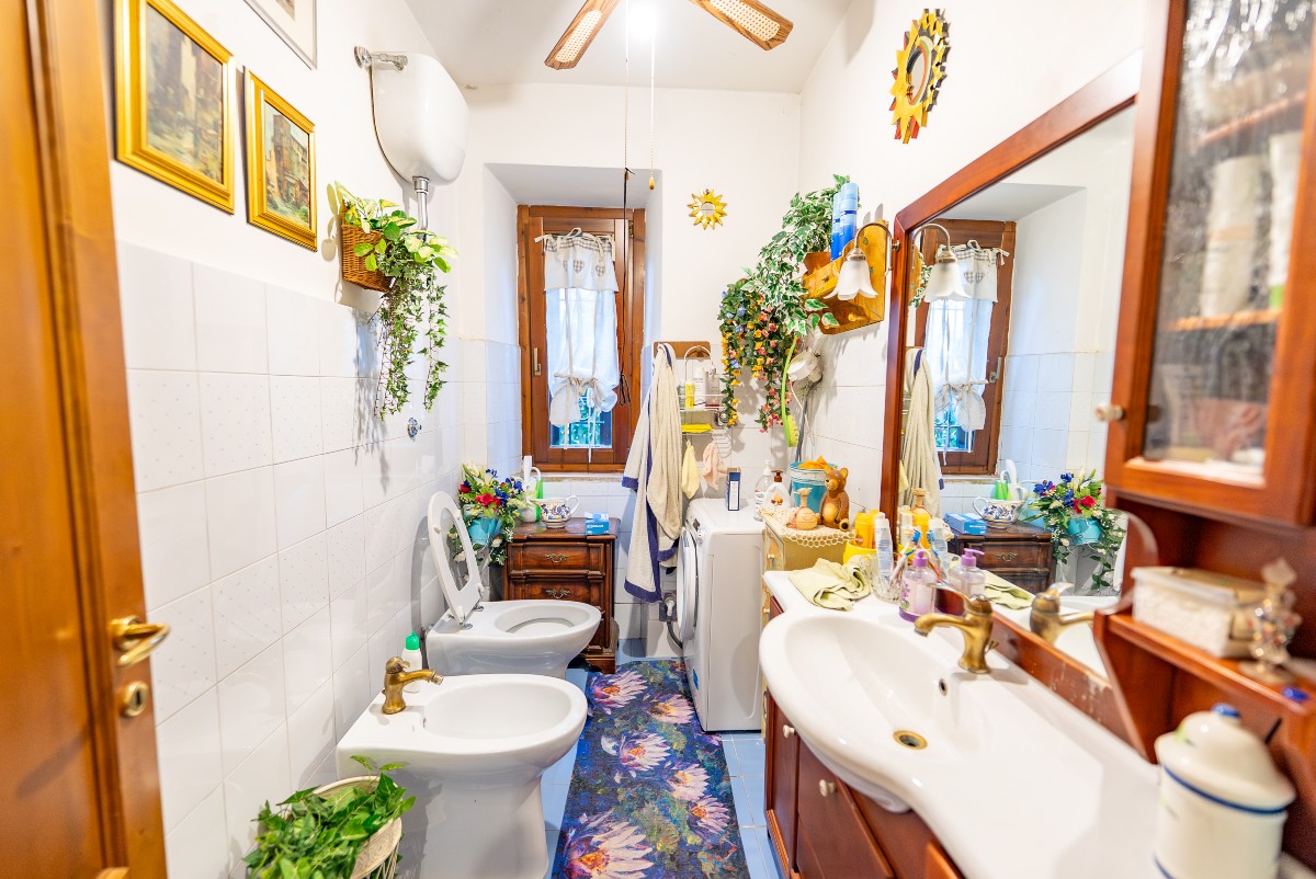 Il bagno di grandi dimensioni collocato al piano primo è stato ricavato da un ambiente utilizzato precedentemente come cucina, e la stessa puo’ essere ripristinata in caso di realizzazione di due appartamenti.