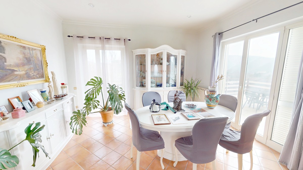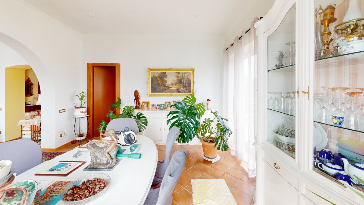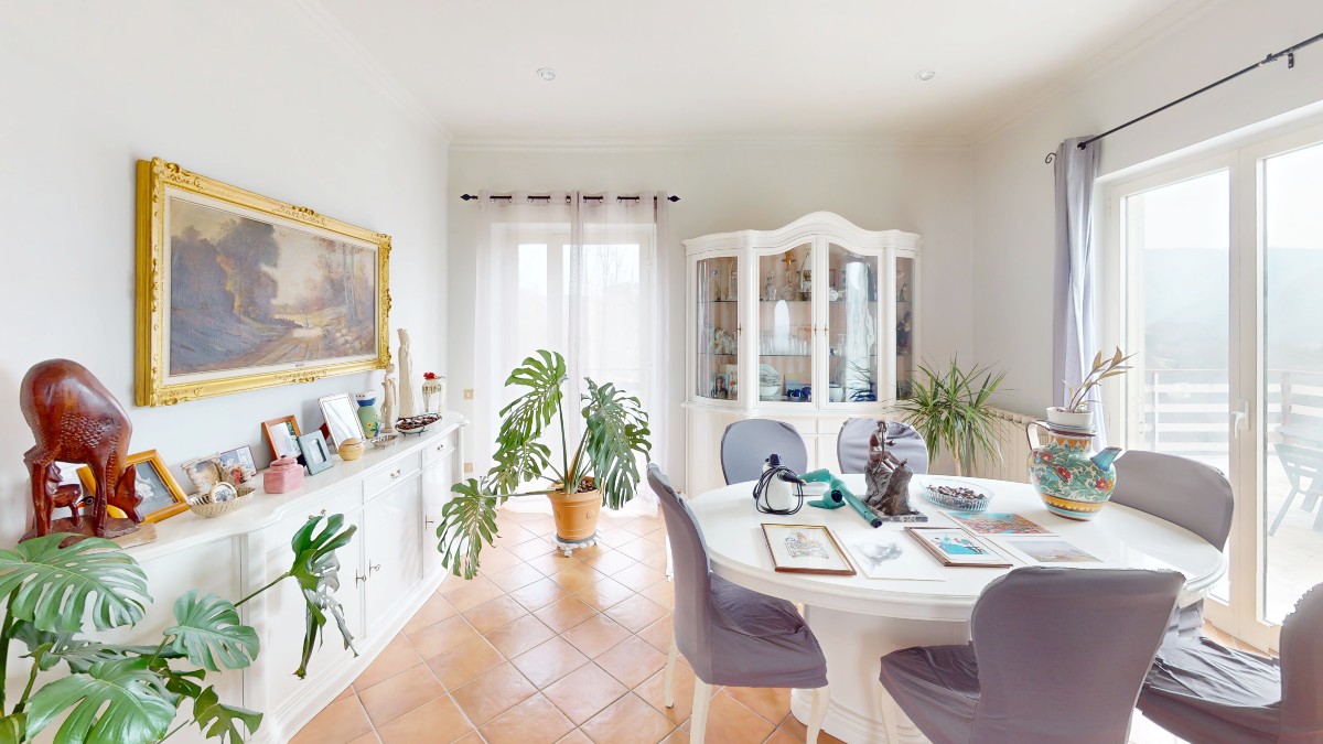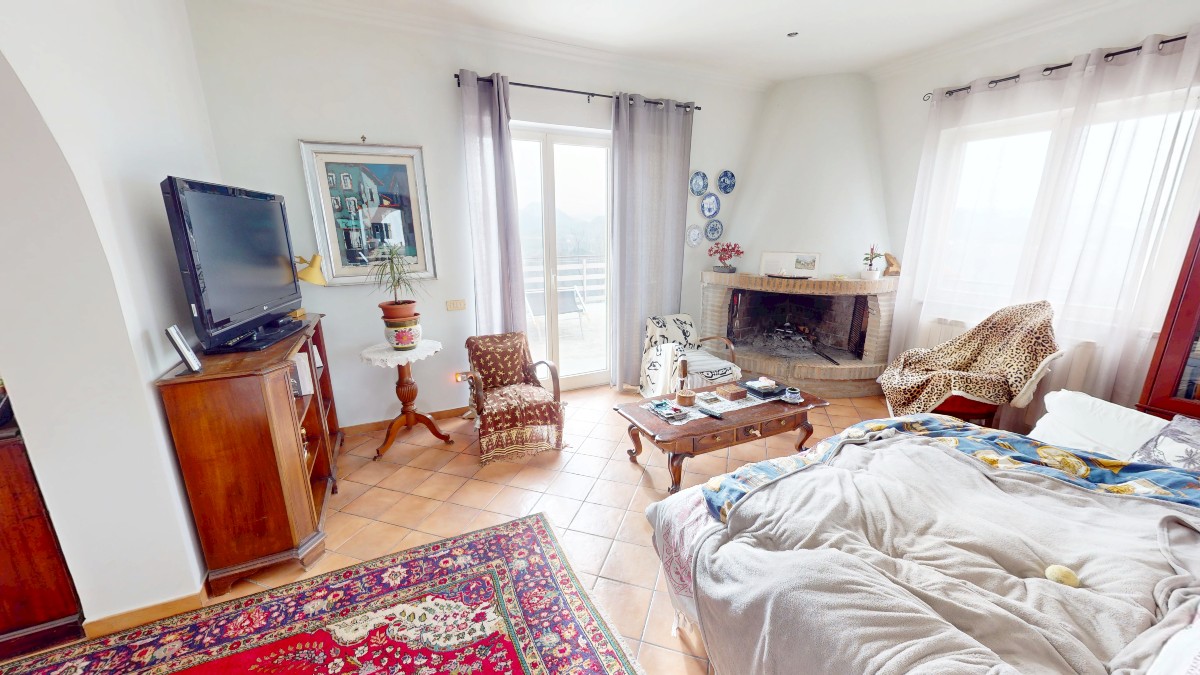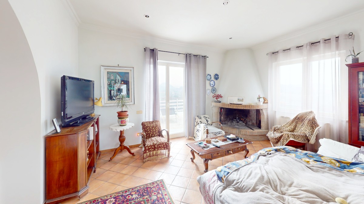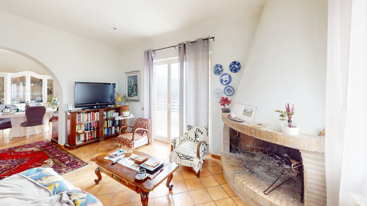 – Appartamento principale: di 147 mq circa incluse aree scoperte è composto da corridoio, camera patronale, cameretta, cucina, doppio salone con camino. Completa la proprietà ampio terrazzo con vista mozzafiato e portico;